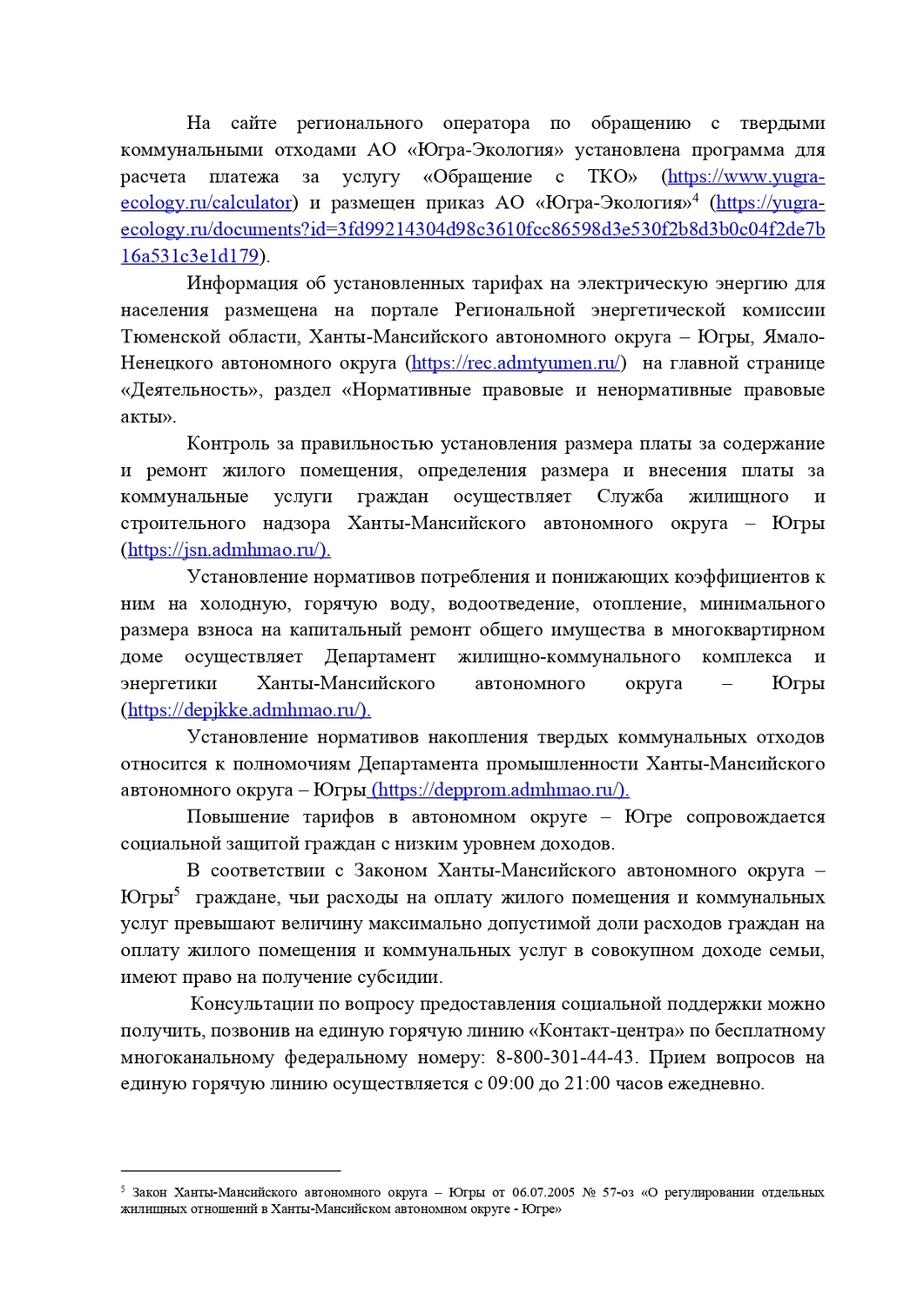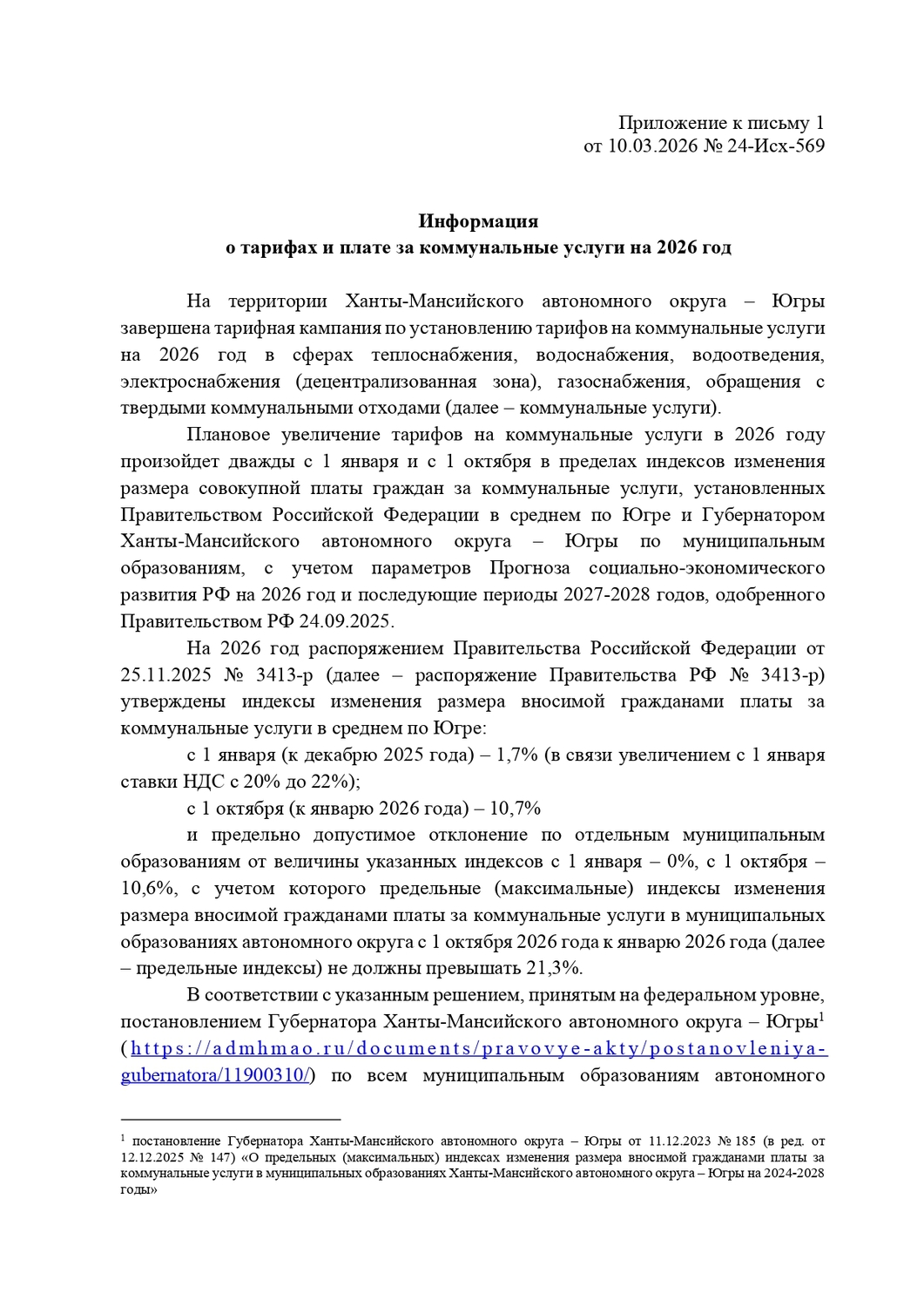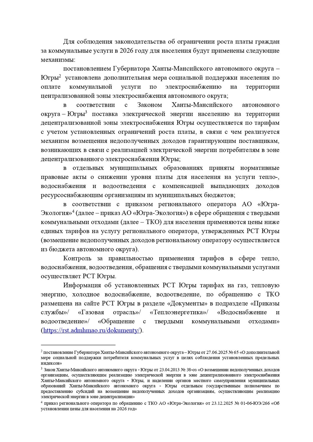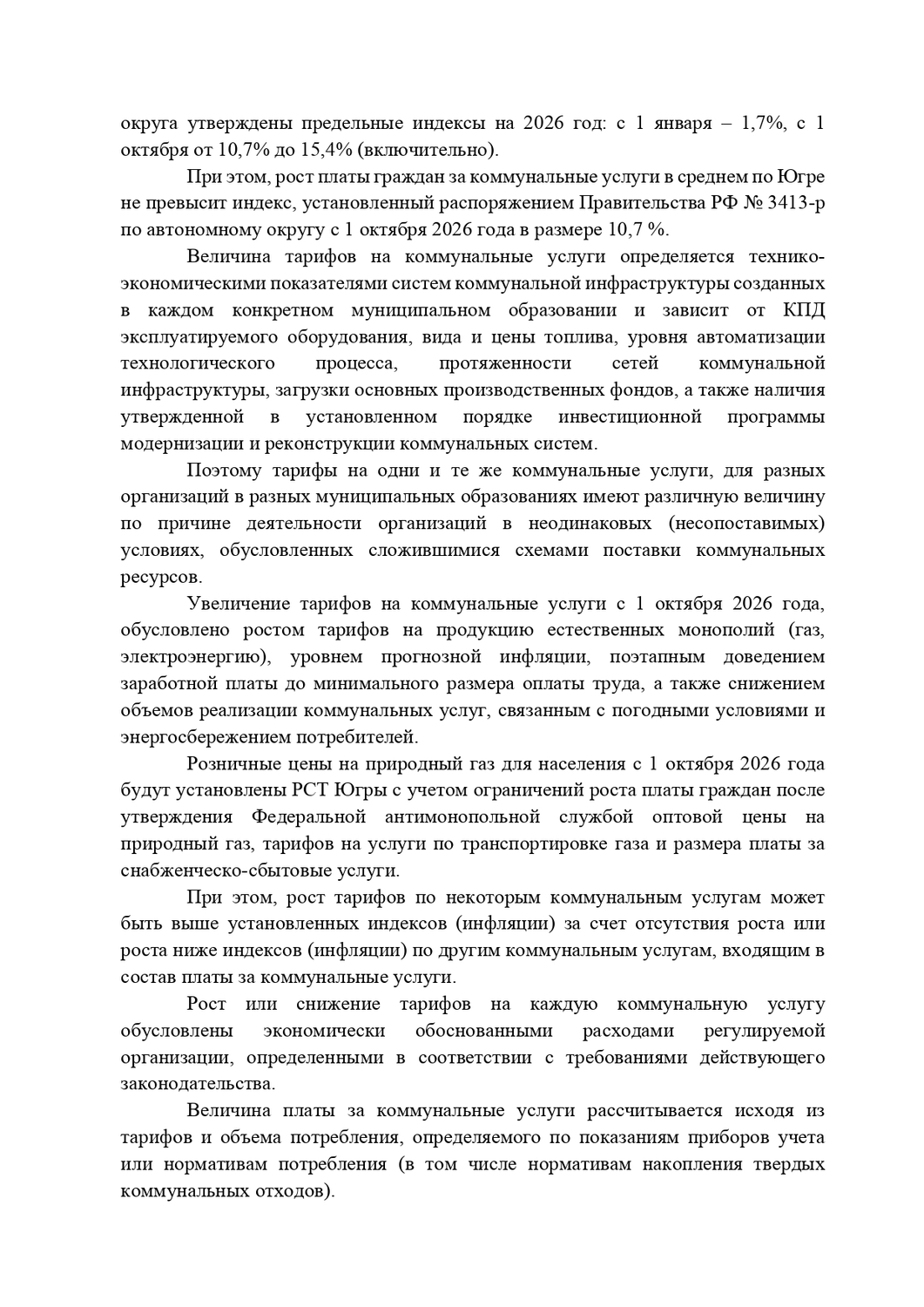 Информация о тарифах и плате за коммунальные услуги на 2026 год